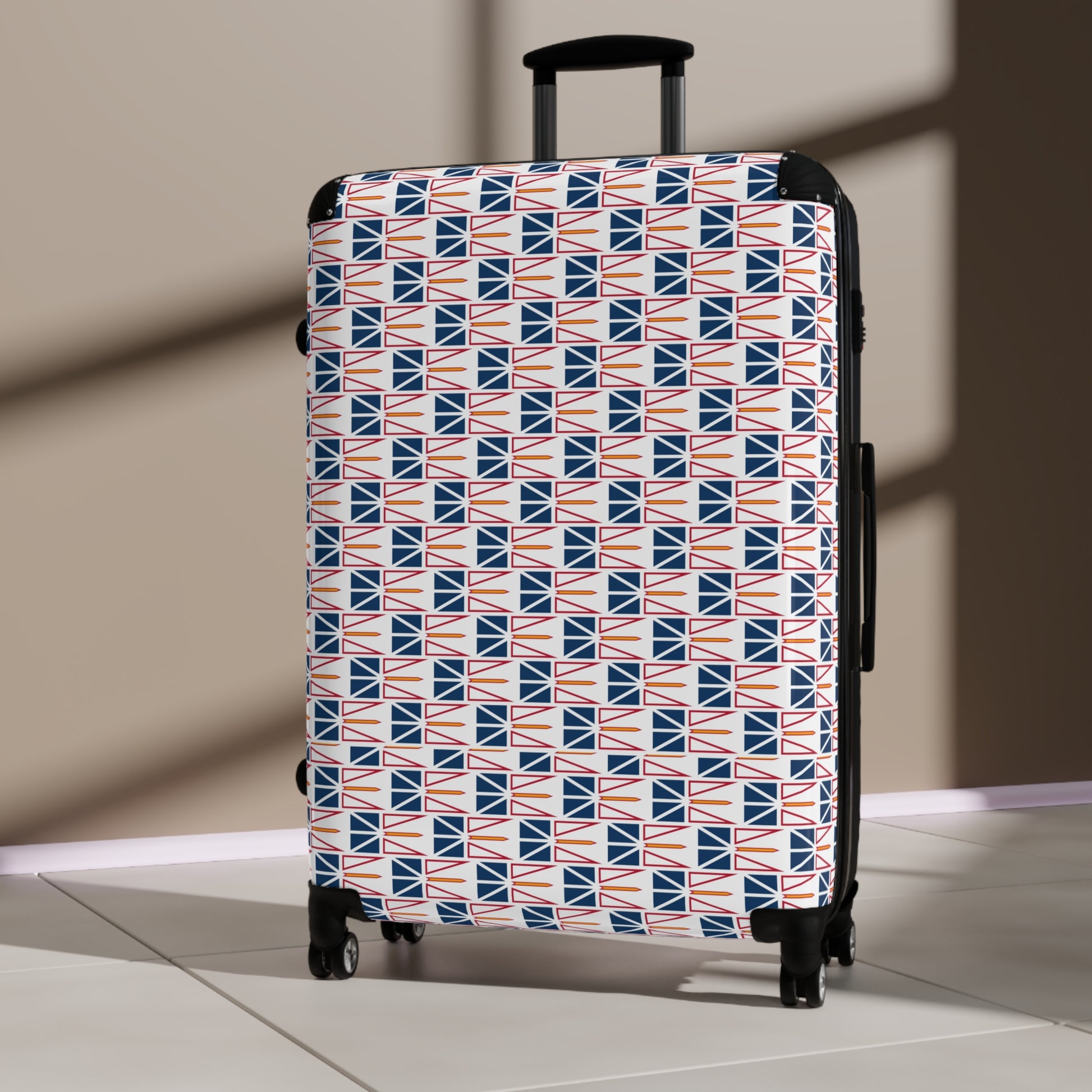 This striking 3-piece luggage set is wrapped in a bold, repeating pattern of the Newfoundland and Labrador flag—clean, crisp, and instantly recognizable. Perfect for proud Newfoundlanders at home or away, it’s built tough for adventure and designed to stand out with unmistakable provincial pride. A suitcase set that says where you're from, before you even say a word.