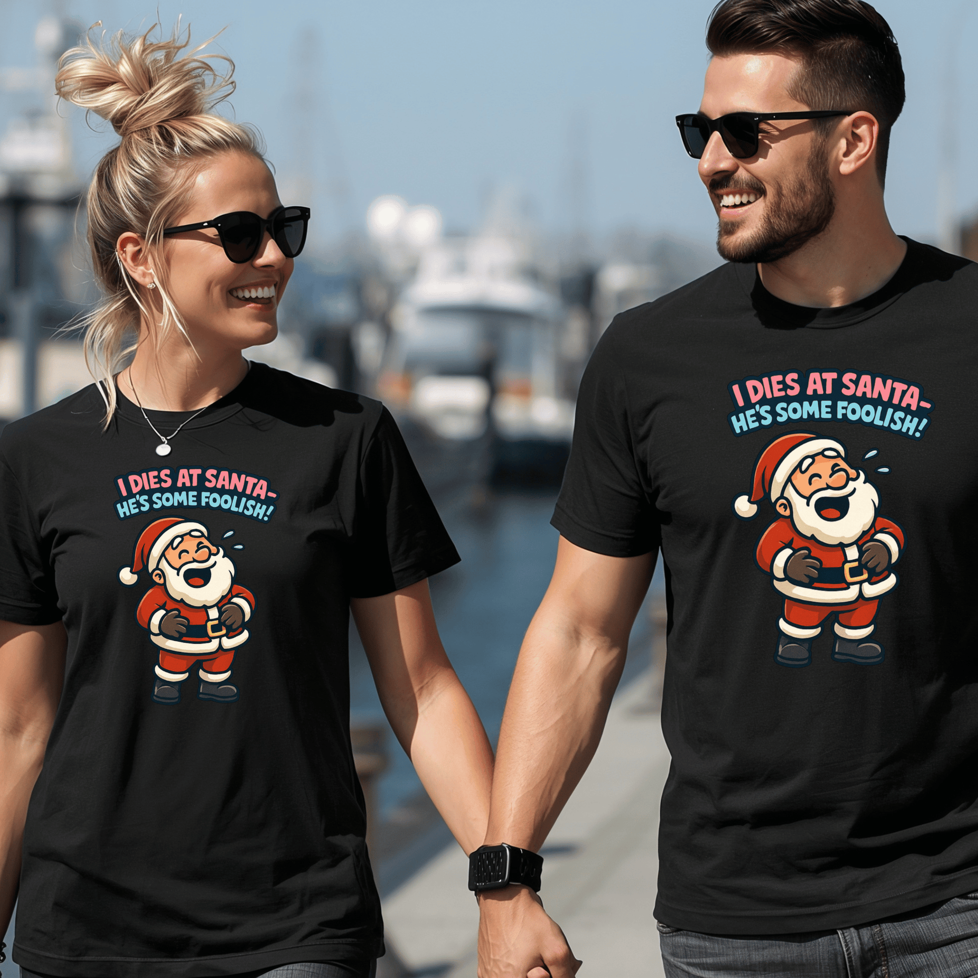 Crack up in true Newfoundland style with this hilarious “I Dies at Santa – He’s Some Foolish!” t-shirt. Featuring a laughing cartoon Santa and iconic local expression, it's perfect for spreading festive cheer with a touch of East Coast charm. Ideal for holiday parties or gifting with a laugh!
