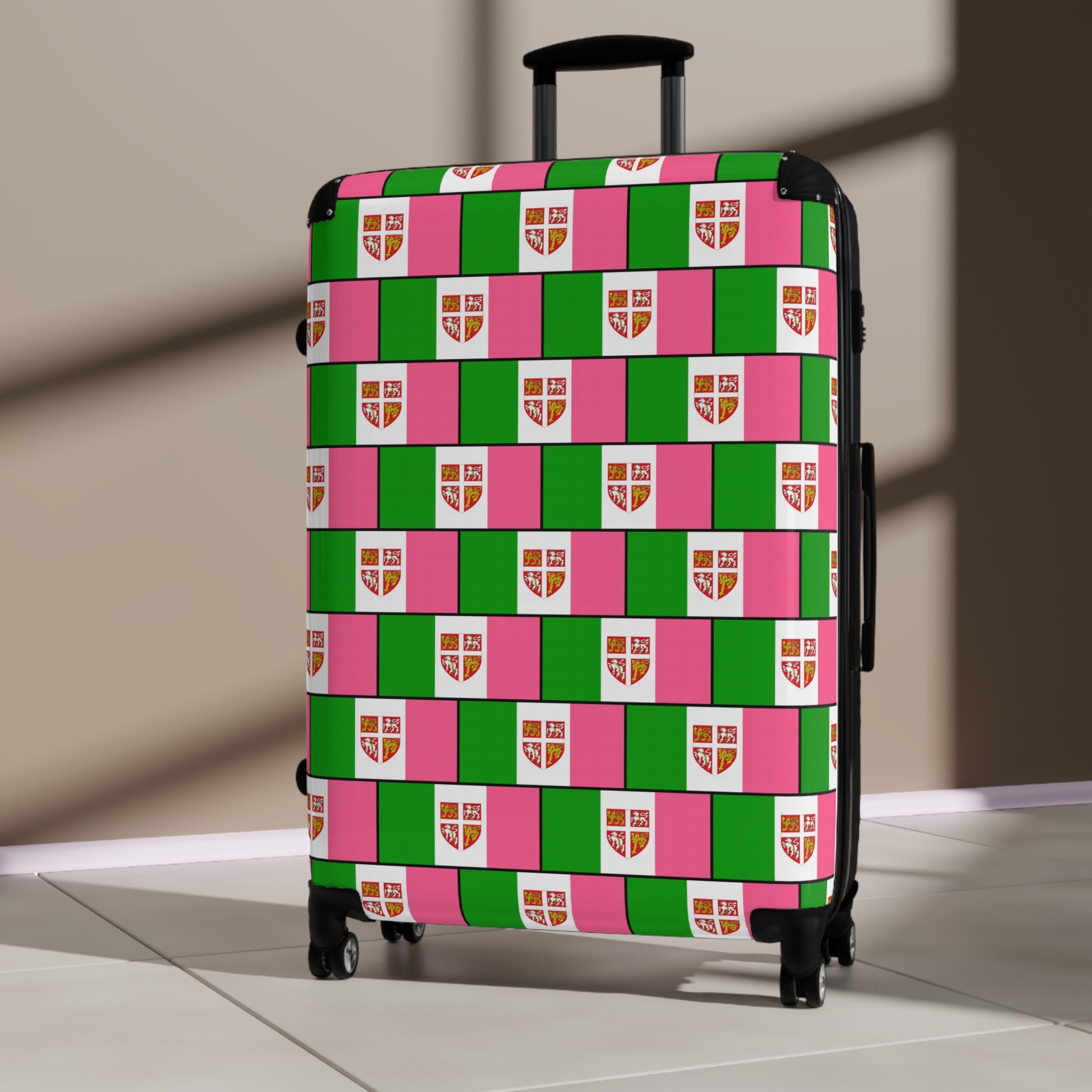 Pink, White & Green Flag 3-Piece Luggage Set with Coat of Arms