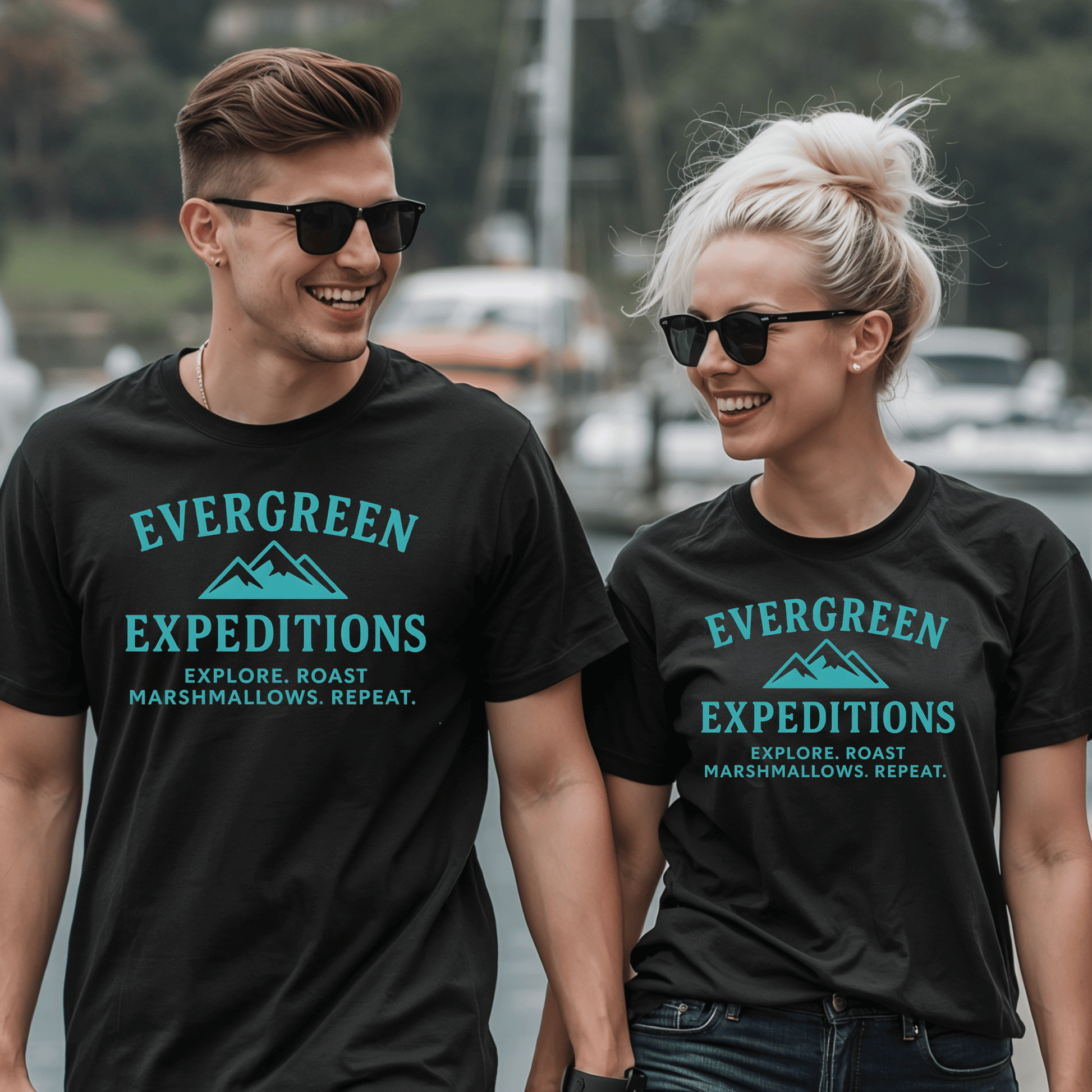 Adventure starts where the trail ends — and the Evergreen Expeditions tee is made for those who live for the great outdoors. Featuring bold mountain graphics and the motto “Explore. Roast Marshmallows. Repeat.”, this shirt captures the heart of campfire culture with a laid-back vibe.